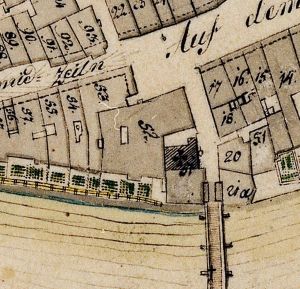 Im Vermessungsplan von 1813 ist dann der gesamte Komplex als ein Haus dargestellt, der große Innenhof ist verschwunden, an dessen Stelle ist wohl westlich desselben ein neuer, kleiner Hof entstanden.