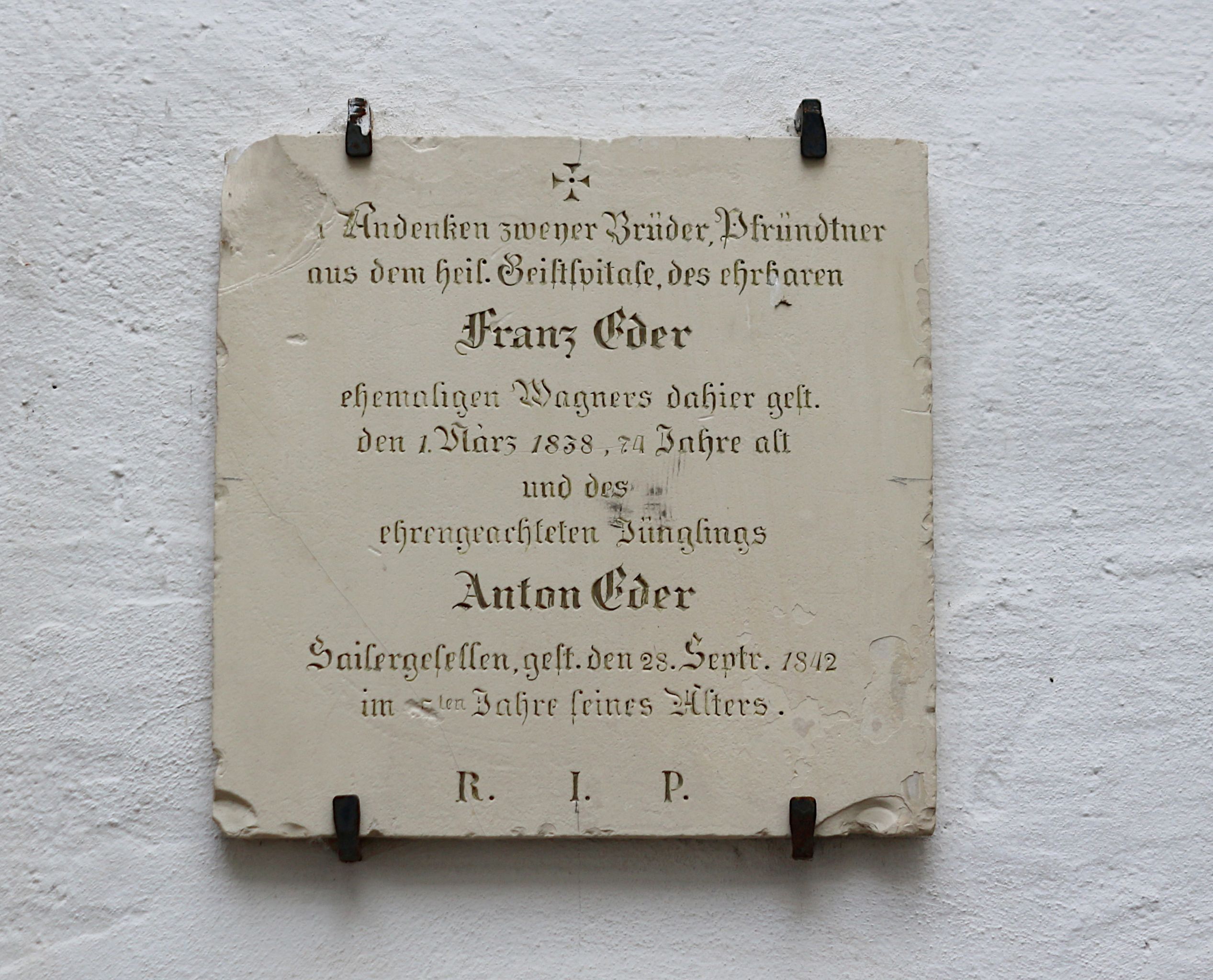 Grabdenkmal, Nr. 164, Lapidarium, Eder, 1838, Zustand 2021. Foto: Ingrid Unger.