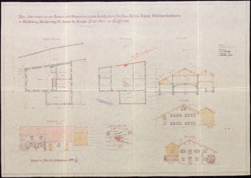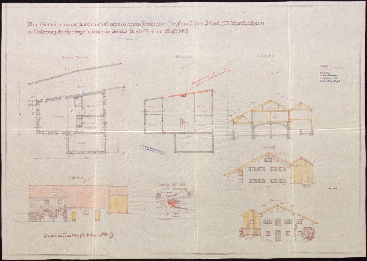 Bauplan: Neuer Kamin und Erneuerung des Dachstuhls für Frau Rosina Scheiel, Plannummer 774 1/2, StadtA Wasserburg a. Inn, II582.