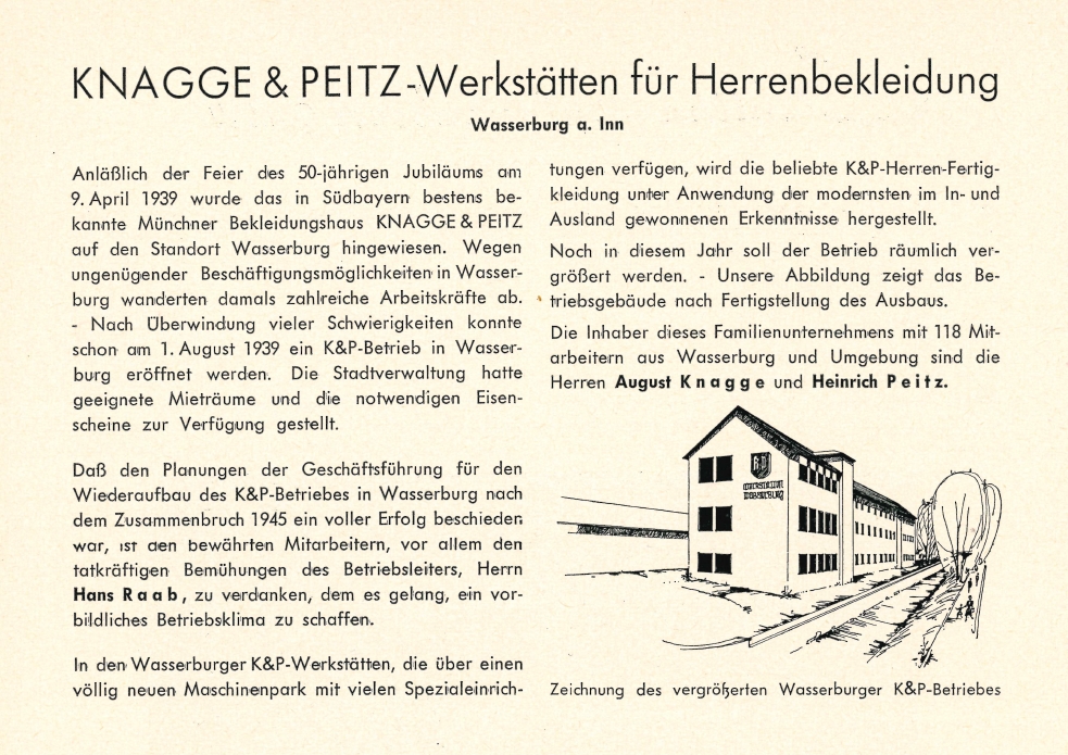 Knagge und Peitz Firmenporträt, 1962, in: Hoeppner, Stadt und Landkreis Wasserburg am Inn, 202.
