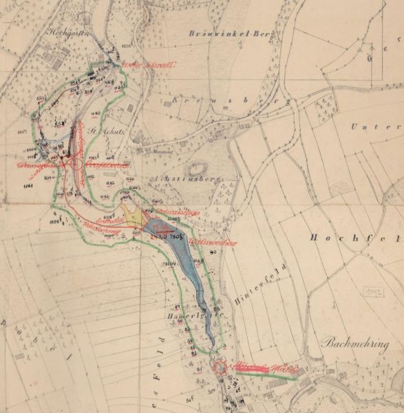 Ausschnitt aus Lageplan Wasserkraftanlage Wildgruber, 1921, StAM, Wasserwirtschaftsaemter 304.