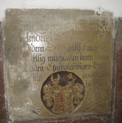 in der Kirche S. Aegidij auf der Burg ist auf der Epistl Seite des Choraltars in dem Presbyterio an der Mauer dieser Grabstein[1].