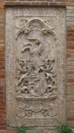 Wappen der Soyer: Drei Seerosenblätter, an den Stielen verbunden. Siehe auch Grabdenkmal, Nr. 82, Schrettl, 1540.