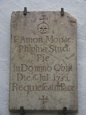 | F(rater): Amon Monac(ensis): Ph(i)l(oso)phiæ Stud(iosus): Pie in Domino Obiit Die. 6. Jul(ii): 1751. Requiescat in Pace |