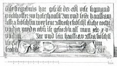 | diese begrebnis hat gestift der Ed-l vest sigmund perckhoffer zw holczhausn̅ Jm und seie̅r hausfraw affra fröschlin weylent albrecht fröschl eliche tocht und ier payder erbn̅ ist gestorbn̅ als man zelt x ve und im […] jar und sein hausfraw affra fröschlī ist Ge im [….] storbn̅ jar |