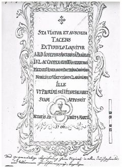 | STA VIATOR ET AUSCULTA. TACENS EX TUMULO LOQUITUR A(dmodum). R(everendus). D(ominus). JOSEPHUS ANTONIUS A PRAIDLON I(uris)U(triusque) L(icentiatus) AC COOPERATOR WASSERBURGI PIETATE VENERANDUS, DOCTRINA CHRISTIANA NOBILIS ET VIRTUTIBUS CLARISSIMUS, ILLE UT PROXIMI SUI VITAM SALVARET SUAM APPOSUIT AETATIS 25 OBIIT 1. MARTII 1706 |