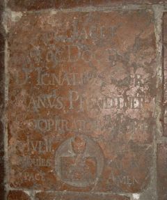 | HIC IACET R.9s (everendissimus) : ac : DOCTISsm9(imus): D(ominus): IGNATIUS GER MANUS PFENDTNER. COOPERATOR MORT(uus). 23. IULII, AN(no) 1737 REQUIESCAT IN PACE AMEN |