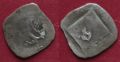 Die Wasserburger Pfennige verteilen sich auf zwei Gruppen. Bis ins Jahr 1406 war in Bayern die Prägung von einseitigen Pfennigen üblich. Solche dürften also in Wasserburg von etwa 1392/94 bis 1406 unter Herzog Stephan III. (1375-1413) geprägt worden sein (vgl. Katalog, Abbildungsfolge 1). Diese Pfennige sind offenbar erstmals im 1904 entdeckten Fund von Rabenschwand (Gde. Oberhofen am Irrsee, Politischer Bezirk Vöcklabruck, Oberösterreich)[22] bekannt geworden, dessen Verbergung ab 1441 anzusetzen ist. Nur in wenigen Exemplaren ist bisher ein Hälbling dieses Typs belegt (vgl. Katalog, Abbildung 2).