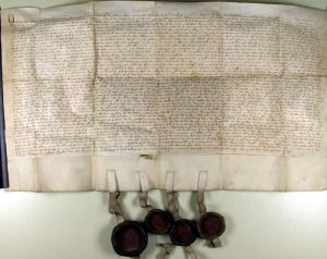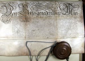 Wichtig ist zum einen die Urkunde vom 28. November 1374 des bayerischen Herzogs Stephan II. und einer Söhne Stephan, Friedrich und Johann, die bis in die Frühe Neuzeit hinein der zentrale Bezugspunkt für das Gedächtnis der Stadt hinsichtlich des Stadtrechts im subjektiven Sinn blieb, wobei die noch ältere Verleihung, die infolge des Brands um 1340 vernichtet worden war, nie unerwähnt blieb.[103]