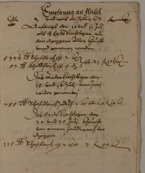 Es folgen die weiteren Nachtlager am 15./16. Juli, 24./25. Juli, 27. Juli und 27. August. Insgesamt wurden 1973 ½ Pfund Fleisch für 65 Gulden 14 x. 2 d.[46] gekauft. Es folgt nun in einem zweiten Teil der Verkauf des Fleisches und der daraus erzielte Erlös. Wieder werden die einzelnen, insgesamt fünf Nachtlager nacheinander aufgeführt. Das Fleisch wird jeweils an die Verordneten in den Küchen und die Verordneten für das rohe Fleisch verkauft, insgesamt werden so für die gesamte Fleischmenge 66 Gulden 37 x. erlöst. Es folgen noch Ausgaben für Verpflegung der Verordneten, so dass die Rechnung am Ende mit einem Minus von 1 Gulden 13 x. 1 d. schließt, welches vom Rat der Stadt zu erstatten ist. Da in der Rechnung auch Botenlöhne für die Zustellung von Schreiben an die Richter zu Kling und Haag enthalten sind, liegt die Vermutung nahe, dass es sich hierbei um die Abrechnung der Kosten des Durchzugs des italienischen Kriegsvolks handelt. Die Botenlöhne würden sich dann auf die Urkunden der Stadt Wasserburg vom 11. Juli 1595 beziehen, welche nachweislich den Landrichtern zu Kling und Haag zugestellt wurden, da diese entsprechende Urkunden für Wasserburger Bürger erließen. Die Haubt Rechnung lässt darauf schließen, dass die Beschaffung von Lebensmitteln erfolgreich verlief, immerhin konnte man fast 2.000 Pfund Fleisch ankaufen.