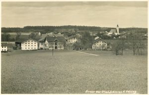 Reitmehring - von ahd. riuten/reuten - roden - ebenfalls Ortsteil der ehemaligen Gemeinde Attel, heute Stadt Wasserburg a. Inn, taucht in den Quellen ursprünglich als Rutemann (1234) oder Reutmannen (1322) auf.[9] Der Reuter oder Reutmann rodet und siedelt hier. Der ing-Name ist erst später nachweisbar (Reithmaning, 1637; 1729 Sebastian Schmidt von Reutmaring, Gericht Wasserburg.[10] Es handelt sich demnach also nicht um ein echtes ing-Suffix. Der Ortsname ist durch Laut-Verschiebungen entstanden. 1876 hatte das Dorf 121 Einwohner.[11]