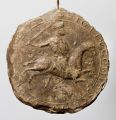 Siegel wittelsbachischer Städte, auf denen wie im Falle Wasserburgs allein der Löwe auftritt, finden sich im Verlauf des weiteren 13. Jahrhunderts schließlich in der Pfalz: Wiesloch führte zwischen 1299 und 1369 nur den Löwen im Siegel. Im 1277 von König Rudolf zur Stadt erhobenem Alzey bestanden zwei Siegel nebenher; das eine zeigt eine Fidel und erscheint in Siegeln der Truchsessen und der Winter von Alzey, das andere den Löwen der Wittelsbacher, die mit dem lokalen Adel um die Stadtherrschaft rangen.[36] Hier mag sich auf kommunaler Ebene eine gewisse regionale Verdichtung des (im Laufe der Zeit immer mehr zum „pfälzischen“ werdenden) Löwen angebahnt haben, wie das zumindest auch partiell im Niederbayerischen mit dem Spanheimer Panther zu beobachten ist (Eggenfelden, Reichenhall, Vilsbiburg).[37]