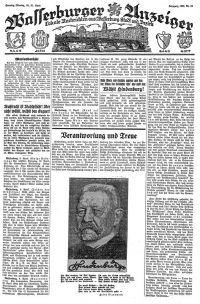 Ganz eindeutig war dagegen die Stellungnahme in Wasserburg. Am 9. April standen die beiden Lokalseiten ganz im Zeichen der Wahl und der Agitation für Hindenburg. Auf der ersten wurde der Letzte Appell der Bayerischen Volkspartei nicht nur mit einer Strichzeichnung des Reichspräsidenten ergänzt, auch eine Abbildung des Stimmzettels mit einem Kreuz beim Namen Hindenburgs durfte nicht fehlen. Und auf der zweiten Seite gab es nicht nur einen fast halbseitigen Bericht über eine Versammlung des Hindenburg-Ausschusses in Wasserburg, es wurde auch in einem eigenen Artikel dezidiert gegen seinen schärfsten Konkurrenten angeschrieben: Wer Hitler wählt, verrät Bayern! Fortgesetzt wurde der Einsatz für Hindenburg auch am 10. April, wo sogar ein handsigniertes Foto des amtierenden Reichspräsidenten nicht fehlen durfte.