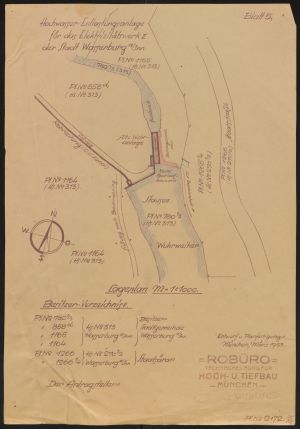 - ↑ Lageplan Wasserkraftanlage Wildgruber, 1921. Einzeichnung im älteren Kataster, Mitte 19. Jh., StAM, Wasserwirtschaftsaemter 304.