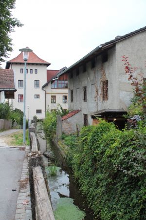 - ↑ Hier, nur unweit östlich der Schleifmühle, waren Wasserschloss und das Gefälle zum Krafthaus Wildgruber (heute am Wuhrbach 6) vorgesehen, StAM, Wasserwirtschaftsaemter 304.