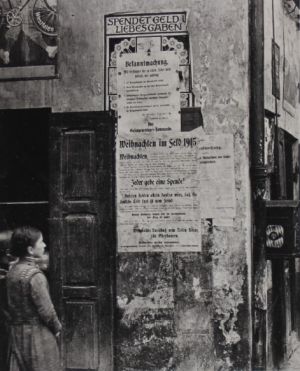 Die kriegsbedingten wirtschaftlichen Probleme führten bereits im Winter 1914/15 zu enormen Preissteigerungen und großen Versorgungsengpässen bei Lebensmitteln.[46] Am 23. Juli 1915 erließ deshalb der Bundesrat die Bekanntmachung gegen übermäßige Preissteigerung[47], die aber die Probleme mit der Nahrungsmittelversorgung der Bevölkerung kaum zu lösen vermochte. Da Deutschland seit August 1914 unter der Tatsache litt, dass nahezu keine Nahrungsmittel mehr importiert wurden, war den Entscheidungsträgern recht bald deutlich: Man werde die deutsche Bevölkerung kaum ausreichend ernähren können. Spätestens im Januar 1916 dürfte diese Tatsache jedem bewusst gewesen sein. Die Reichsgetreidestelle organisierte zentral den Aufkauf von Brotgetreide und subventionierte auch die Endkundenpreise, die Reichskartoffelstelle übernahm die zu geringen Kartoffelimporte, der Kriegsausschuss für Öle und Fette musste die ausbleibenden Importe von Öl und Fett durch Produkte der einheimischen Landwirtschaft ersetzen. Angesichts dieser Vielzahl von staatlichen Koordinierungsstellen wurde die Versorgung der Bevölkerung jedoch schlechter und nicht besser. [48] Wegen des akuten Mangels an Fleisch produzierte z.B. die Stadt München Kriegswurst, das war eine Wurst, die mit Kartoffelschalen und Küchenabfällen gestreckt wurde.[49] Da es nirgends genug von dem gab, was man brauchte, entwickelte sich ein Schwarzmarkt und die Menschen verstärkten ihre Hamsterkäufe.[50]
