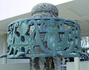 Brunnenanlage Jonas und der Walfisch für das Krankenhaus in Wasserburg, Bronze, Nagelfluh, 1963-1964